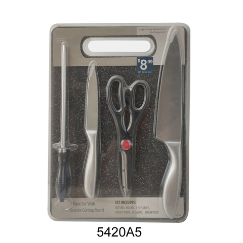 5pcs in acciaio inox set di coltelli con il taglio del granito tagliere
