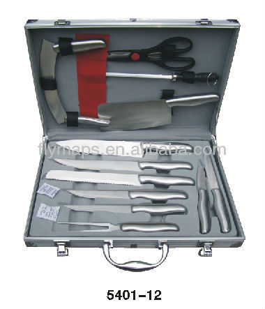 12pcs in acciaio inox manico vuoto coltello set con il caso di alluminio
