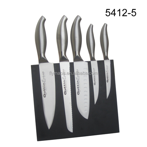 Set di coltelli da cucina con manico cavo in acciaio inossidabile 5 pezzi supporto per blocco coltello magnetico