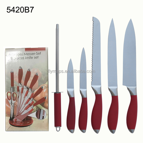 Vendita calda a buon mercato coltello 7 pezzi coltelli da cucina set con scissor coltello di legno blocco di supporto del basamento