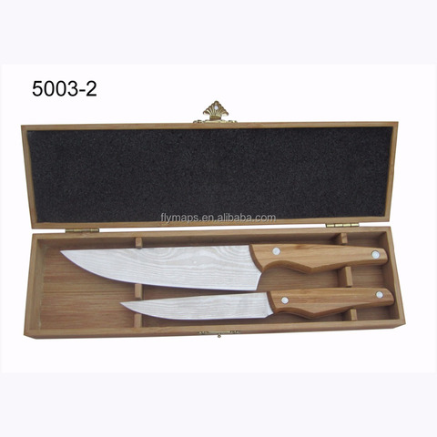 2 pz set rivestimento di damasco chef e taglierino in scatola regalo in legno